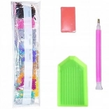 A készletben mindent megtalál, amire szüksége van: előrenyomtatott motívumú vászon, applikáló toll, színes kövecskék, tálca és viasz. Befejezés után a kész kép keretezhető (a keret nem része a csomagnak), így egyedi dekorációvá vagy remek ajándékká válik.