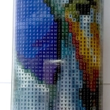 - Teljes készlet: előnyomott motívumú vászon, színes kövecskék, applikáló toll, tálca, viasz.