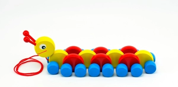 Szerezze be gyermekeinek ezt a színes fa hernyót, amely ideális a kisgyermekek motorikus képességeinek fejlesztésére. Húzás közben a hernyó mászik, és örömet szerez a gyerekeknek a mozgás során.