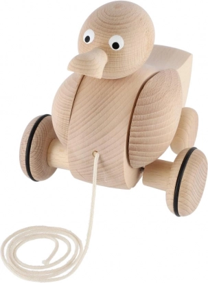 Húzós fa kacsa természetes fából, 17 cm. Mozgás közben a fejét mozgatja, fejleszti a motorikát és az egyensúlyt. Tartós kivitel, 3 éves kortól ajánlott.