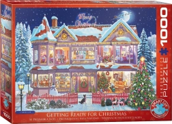Az EUROGRAPHICS „Karácsonyi készülődés” puzzle ünnepi hangulatot és egyben kihívást kínál a kirakók kedvelőinek. A speciális stancolás nem követi a szokványos rácsszerkezetet – a sarkok és szélek nem mindig esnek egy vonalba, ami növeli a kirakás nehézségét és élvezeti értékét.