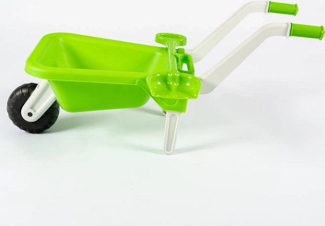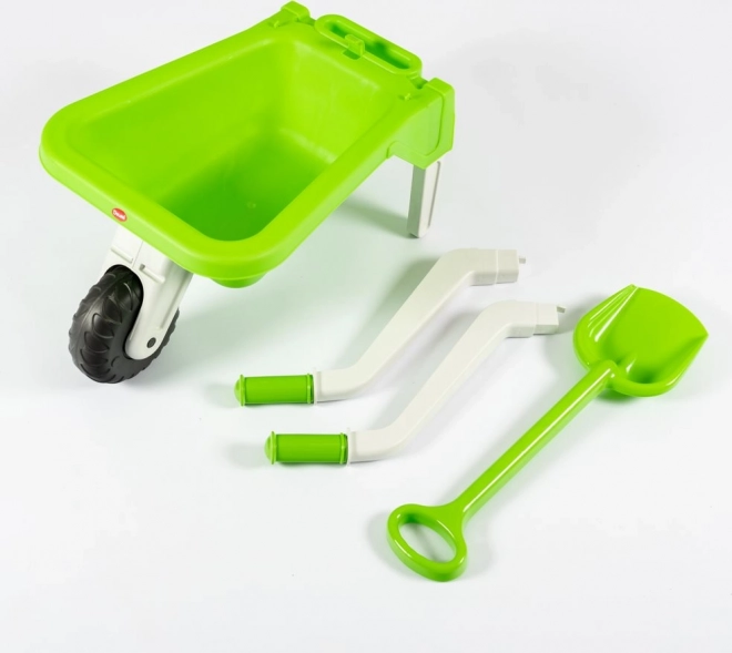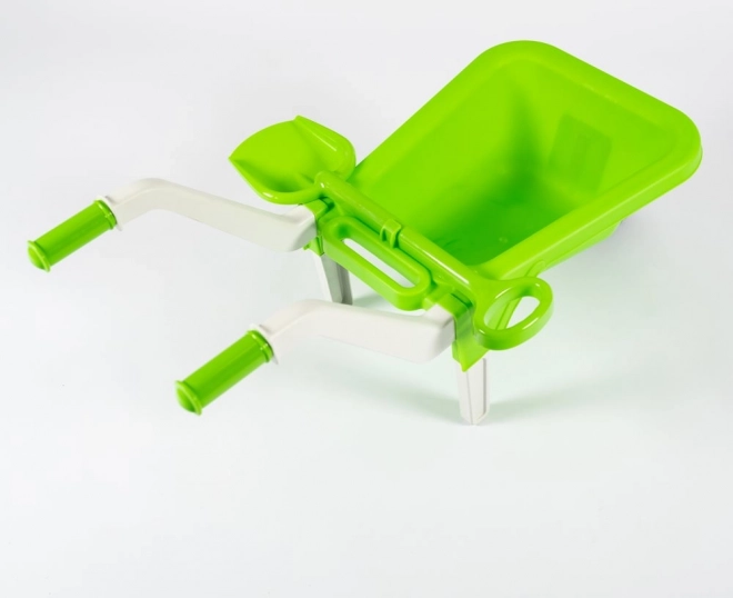 Gyermek műanyag talicska zöld billenőrésszel és praktikus lapáttal, ideális kerti és homokozós játékhoz. Könnyű szerkezetet, egyszerű kezelhetőséget és strapabíró műanyag kivitelt kínál, amely bírja a kis segítők mindennapi kalandjait. A csomag tartalma egy műanyag lapát, 49 cm-es.