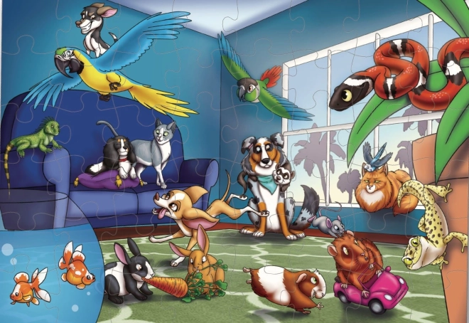 Élvezze a kirakóst a kedvelt házi kedvencek motívumával, amely ideális a gyermekek képzelőerejének és kézügyességének fejlesztésére. Ez a padlópuzzle 4 éves kortól ajánlott gyermekeknek, és remek módját kínálja az időtöltésnek a csemetéivel.