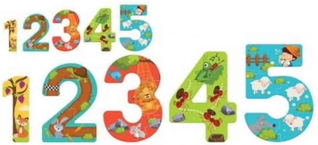 Ezzel a kreatív kirakóval gyermekeid oktató élményt élvezhetnek játék közben. A termék egy ötrészes készletet tartalmaz, ahol minden darab egyedi szám formájú 1-től 5-ig.
