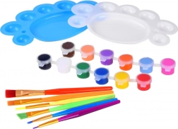 Lepje meg gyermekeit azzal a kreatív festőkészlettel, amely mindennel fel van szerelve, amire szükségük lehet! A csomagban található 12 szín, 2 paletta a színek keveréséhez, különböző vastagságú ecsetek, formázó hengerek és habszivacs végződésű ecsetek. Az aranyos állatmintás kötényke és ujjvédők a kis művész védelmére szolgálnak. A gyerekek bélyegezhetnek mintákat, keverhetik a színeket és saját mesterműveket alkothatnak.