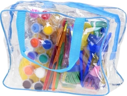 Átlátszó táska cipzárral, ami könnyű szervezést és a festőeszközök szállítását biztosítja.