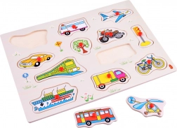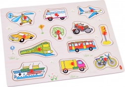 A puzzle támogatja a kognitív képességeket és megtanítja a gyermekeket a színes formák és közlekedési eszközök felismerésére.