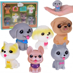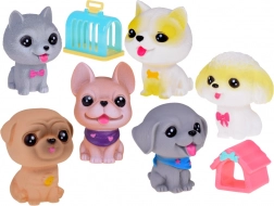 Hat cuki gumi kutyus készlete tökéletes kiegészítő minden állatszerető gyermek számára. Használhatók kutyaszalonnak, kutyahotelnek, kölyökóvodának vagy állatorvosnak a játékokban. Gyengéd kidolgozása és valósághű részletei, mint például a nagy szemek és édes arckifejezések, ezek a figurák ellenállhatatlanok.