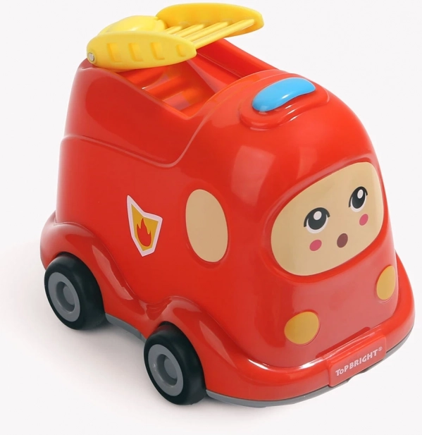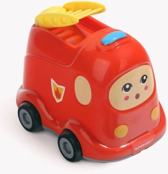 A fa kirakó és a kerekekkel ellátott műanyag tűzoltóautó praktikus kombinációja. Játék és a darabok tárolása egy helyen az okos tárolófedélnek köszönhetően.