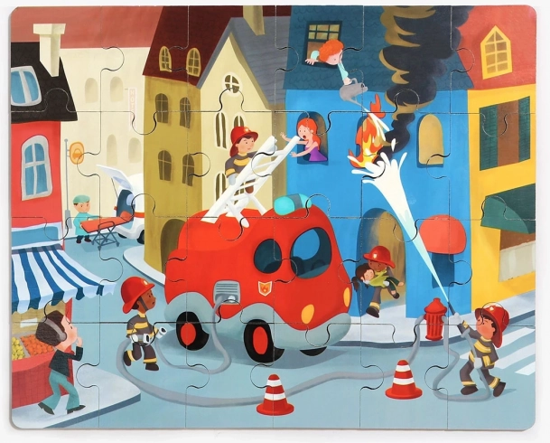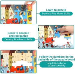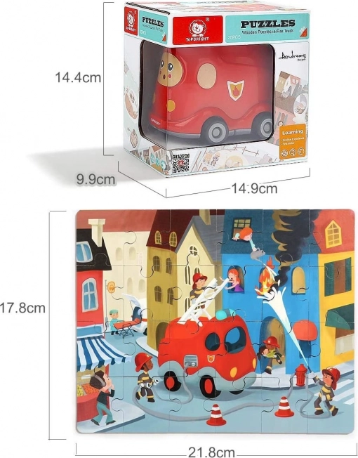 Fedezze fel azt a szórakoztató és fejlesztő játékot, amely a fa kirakót tűzoltóautó témával és egy minőségi, műanyag kisautót gördülő kerekekkel ötvözi. A kirakó minden darabja a hátoldalán számozott, hogy a gyerekek könnyebben haladjanak, miközben észrevétlenül gyakorolják a számokat, a logikát és a türelmet.