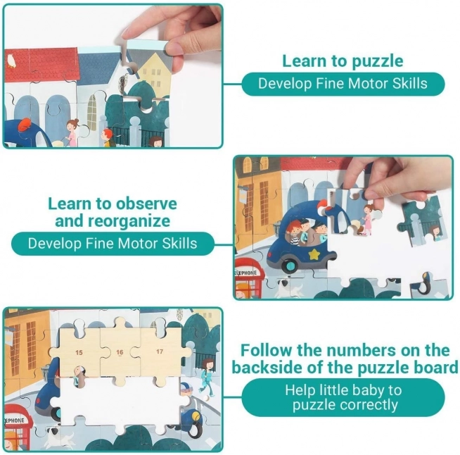 Minden darab hátoldalán szám található – így a gyerekek gyorsabban eligazodnak, fejlesztik a logikát, a matematikai gondolkodást és a türelmet. Ideális első puzzle-nek.