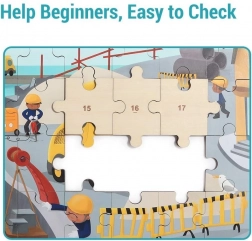 A 24 darab mindegyike a hátoldalán számozott, ami megkönnyíti a kirakást, és észrevétlenül fejleszti a matematikai és logikai gondolkodást. A kész kép továbbá összekapcsolható a TOP BRIGHT mini sorozat további járműveivel (tűzoltóautó, rendőrautó, iskolabusz, buldózer, helikopter és hajó), így panoráma kirakó hozható létre. Több puzzle = több játék és móka!