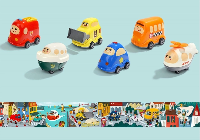 A további TOP BRIGHT modellekkel (tűzoltó- és rendőrautó, iskolabusz, dózer, helikopter) a padlón folyamatos panorámakirakót állíthat össze.