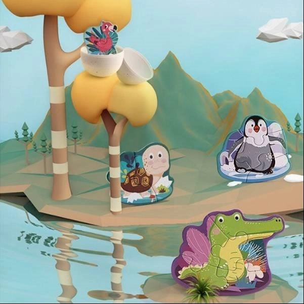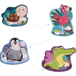 Ez a játékos szett 4 állatos kirakót tartalmaz különböző nehézségi szinten (2, 3, 4 és 5 darab), így tökéletesen igazodik gyermeked tempójához. A darabok nagyok, strapabírók és kellemes fogásúak – ideálisak az első kirakókhoz.