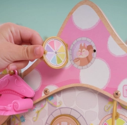 A forgó óriáskerék rózsaszín ülésekkel mozgást és meglepetést visz a játékba. A gyerekek utaztathatják a figurákat és új kalandos jeleneteket alkothatnak.