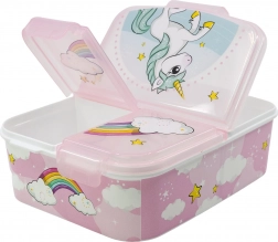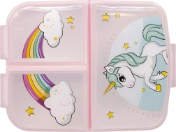 Stílusos, vidám unikornisos és szivárványos többrekeszes uzsonnás doboz, amely segít az ételeket átláthatóan elkülönítve és frissen tartani. A három különálló rekesz ideális gyümölcsnek, zöldségnek, szendvicsnek és apró nassolnivalóknak. A masszív kivitel ellenáll a mindennapos eséseknek és ütődéseknek, így remek választás napi használatra.
