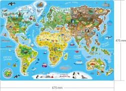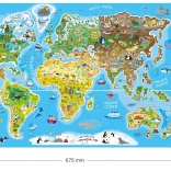 Fedezze fel a világot otthona kényelméből a 160 darabos, színes világtérkép kirakóval. Ideális gyerekeknek és szülőknek – fejleszti a képzelőerőt, a földrajzi ismereteket és a finommotorikát. Nem hiányoznak a világhíres nevezetességek és állatok illusztrációi sem, egy cseh képzőművész munkái. A kirakás egyszerre szórakozás és tanulás a jól áttekinthető térképnek és a 67,5 × 47,5 cm-es nagy méretnek köszönhetően.