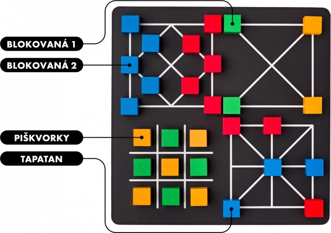 - Tapatan amőba: Stratégiai játék két játékos számára. A cél egy színű három kockából álló sor létrehozása. A játékosok felváltva helyezik és mozgatják a kockákat.