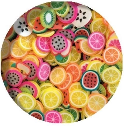 Adj játékos megjelenést minden körömnek színes gyümölcsdíszekkel – kivi, dinnye, citrusok és további motívumok, amelyek a manikűrt apró műalkotásokká változtatják.