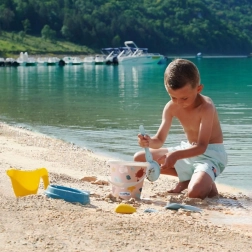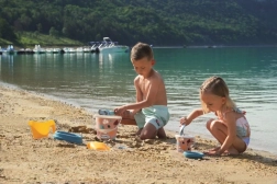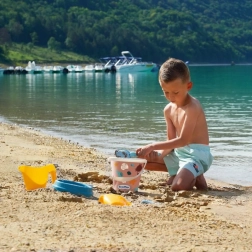 A tengeri motívum támogatja a fantáziát és a játékos kreativitást. A szett praktikus felszerelés a mindennapi nyári kikapcsolódáshoz és a közös kinti pillanatokhoz.