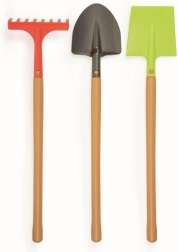 Praktikus kerti szerszámkészlet 70 cm hosszban, amely ásót, lapátot és gereblyét tartalmaz a mindennapi kerti munkákhoz. Ideális választás az ágyások karbantartásához, a föld mozgatásához és a felület rendezéséhez, egyszerű kezelhetőséggel és sokoldalú felhasználással.