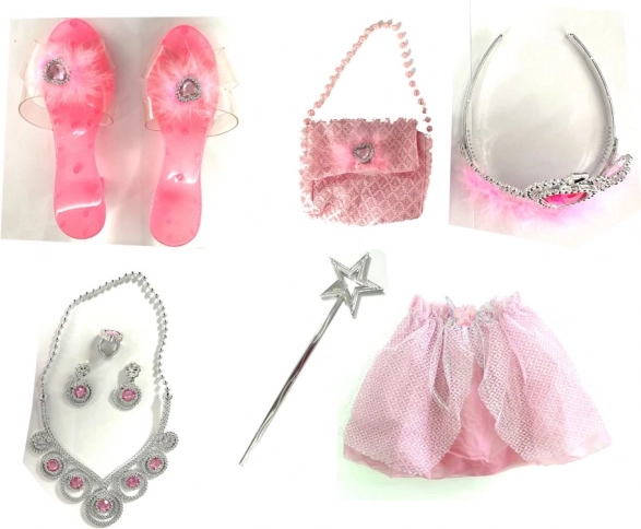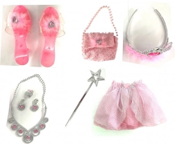 Tegye valóra a gyerekek álmát, hogy hercegnővé váljanak ezzel a hercegnős szettel, amely szoknyát, cipőcskéket és táskát tartalmaz finom rózsaszínben. Támogatja a fantáziát és a szerepjátékot otthon és az ünnepségeken is.