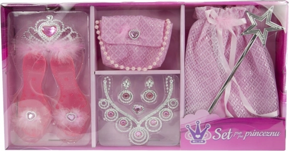 Ez a bájos hercegnői szett mindent tartalmaz, amire a gyerekeknek szükségük van ahhoz, hogy egy szempillantás alatt királyi hölggyé váljanak. Remek választás a mindennapi otthoni játékhoz, a farsanghoz, a születésnapi bulikhoz és a tematikus partikhoz is. Támogatja a képzeletet, az önkifejezést és a beöltözés örömét.