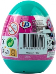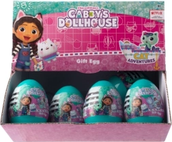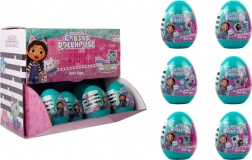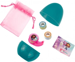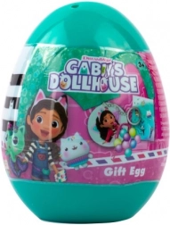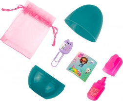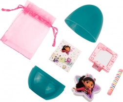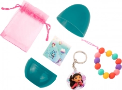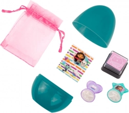 A türkiz tojás a Gabby varázslatos házikója mesés világából témához illő meglepetéseket rejt. A gyerekeket feldobják a cuki matricák, a kulcstartó, a karkötő, a kis bélyegző vagy a dekorációs szalagok, valamint a rózsaszín tasak kincsek tárolására. Minden vidám színekben, játékra és alkotásra kész.