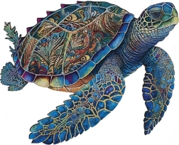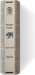 A Green Turtle A4 fa puzzle felejthetetlen kirakási élményt nyújt a szokatlan, már-már művészi formájú daraboknak köszönhetően. Minden elem egyedi, és néhány darab különféle állatok és növények alakjára van kivágva, így az összerakás még szórakoztatóbb és vizuálisan is vonzóbb. A befejezést követően egy kompakt, A4-es méretű képet kap, amely remekül mutat lakásdekorációként.
