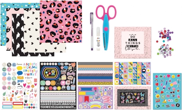Ez a kreatív készlet remek választás mindenkinek, aki szeret alkotni, és szebbé tenné a mindennapi naplóját. A mellékelt díszítőelemeknek és írószereknek köszönhetően könnyedén megtervezheted az egyedi borítót és a belső oldalakat is. Élvezd a kreatív kikapcsolódást, és készíts pontosan olyan naplót, amilyet elképzeltél.