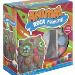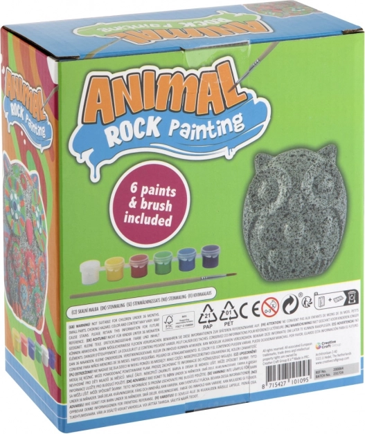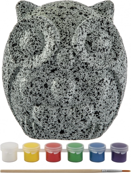 A készlet egy bagoly alakú követ, 6 színt és egy ecsetet tartalmaz – további beszerzés nélkül azonnal kezdheted az alkotást.