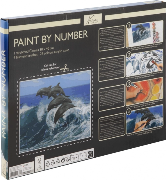 Ez a kreatív készlet lehetővé teszi, hogy könnyedén megalkosson egy látványos, tengeri témájú képet. Csak fesse ki a számozott felületeket a megfelelő színekkel, és fokozatosan kirajzolódik a delfinek dinamikus, realisztikus jelenete. A feszített vászonnak köszönhetően az eredmény azonnal kiállítható.