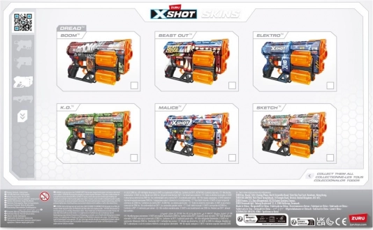 Készülj fel az adrenalindús összecsapásokra a X-SHOT SKINS DREAD blasterrel a feltűnő beast mode skinben. Két, egymástól független forgódob összesen 12 gyors lövést biztosít – ha az egyik kiürül, elég átváltani, és folytatódhat az akció késlekedés nélkül. Az ergonomikus kialakítás és a könnyű konstrukció kényelmes fogást nyújt még hosszabb játék során is.