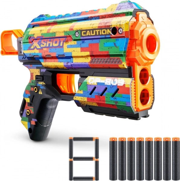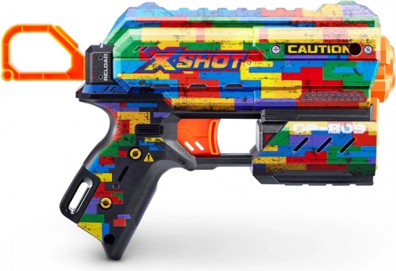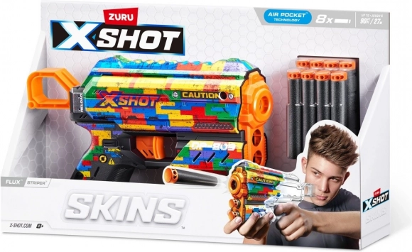 A könnyű és nagy teljesítményű X-Shot Skins Flux blaster Striper skinnel gyors akciót és pontos lövést kínál, akár 27 m hatótávval. Az Air Pocket technológiájú habszivacs lövedékek jobb repülési stabilitást és pontosságot biztosítanak, az elülső tároló felgyorsítja a gyors újratöltést, a csomagban pedig 8 lövedéket találsz. Remek választás kezdőknek és haladó játékosoknak 8 éves kortól.