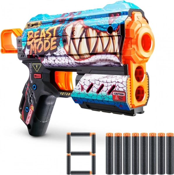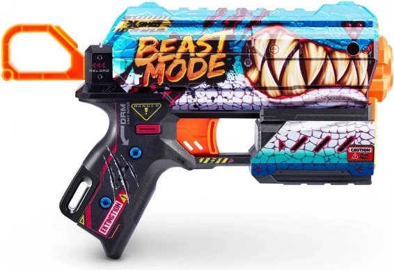 A SKINS sorozat Beast Mode mintája egyedi megjelenést ad a blasternek, részletgazdag grafikával és élénk színekkel. A kompakt forma és az ergonomikus markolat hosszabb játék során is kényelmes fogást biztosít.