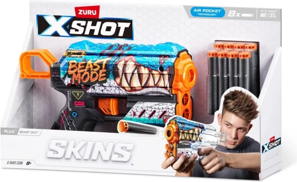 Az X-Shot Skins Flux egy kompakt szivacslövedék-pisztoly, amely vonzó dizájnt megbízható teljesítménnyel ötvöz. A levegőkamrás lövedék-technológiának köszönhetően stabilan repülnek és nagy pontossággal találják el a célt. Ideális dinamikus csatákhoz a kertben, a parkban és otthon.