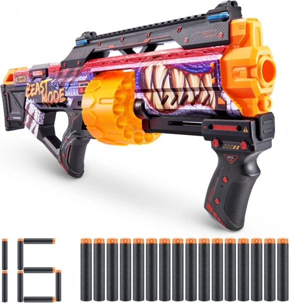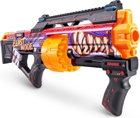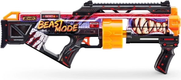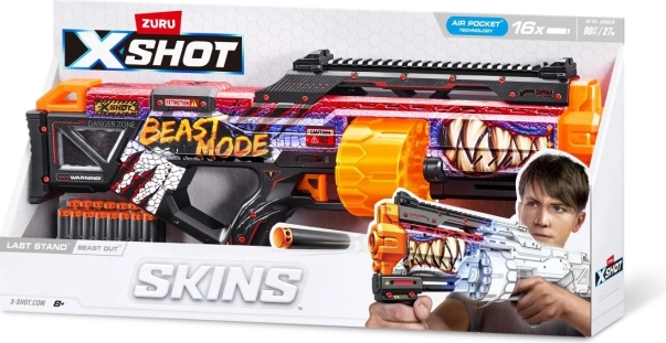 A X-Shot Skins Last Stand Beast Mode egy nagy teljesítményű, gyerekeknek készült szivacslövedékes blaster, 14 lövedékes forgódobbal, akár 27 m hatótávval és 16 Air Pocket technológiájú lövedékkel a csomagban. A taktikai markolatnak és a felhúzósínnek köszönhetően könnyen kezelhető, miközben a feltűnő Skins Beast Mode dizájn minden csatában stílust garantál.