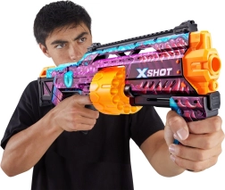 A ZURU X-SHOT Skins Last Stand Enigma látványos megjelenést megbízható teljesítménnyel ötvözi. A 14 lövedékes, automatikusan forgó dob megszakítás nélküli tüzelést tesz lehetővé, míg a manuális felhúzás gyors és magától értetődő. A csomagban 16 darab, légzsebes technológiájú lövedék található a stabil repülésért és a nagyobb hatótávért.