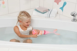 A baba a víz felszínén úszik, gyönyörűen kidolgozott, pikkelyes farka és vidám színei első pillantásra lenyűgöznek. Ösztönzi a kreativitást, a szerepjátékot és fejleszti a finommotorikát. Ideális ajándék fiúknak és lányoknak 1 éves kortól.