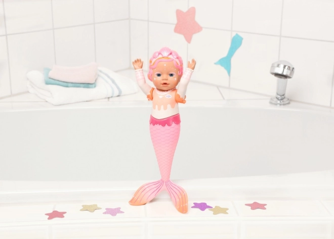 Fedezd fel a tengeri történetek varázslatos világát a BABY BORN My First Mermaid babával. Könnyű, a gyerekkezekhez kellemesen formázott, és minőségi, vízi játékhoz is alkalmas anyagokból készült. A kádban és azon kívül is kedvenc társa lesz a tengeres meséket kedvelő kicsiknek.