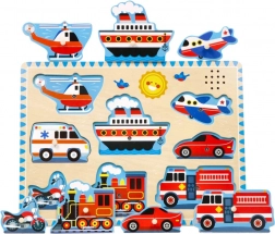 Oktatójáték 2 éves kortól, amely a képet és a hangot kombinálja a gyermeki kíváncsiság és tanulás serkentésére. Minden puzzle darab nemcsak járművet ábrázol, hanem annak jellegzetes hangját is lejátsza! A puzzle darabok fogantyúval vannak ellátva a könnyű kezelhetőség érdekében.