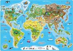 Fedezd fel a világot otthonod kényelméből játékos puzzle-ökkel gyerekeknek és felnőtteknek. A földrajzi puzzle világtérképpel áttekintést nyújt a kontinensekről, a világ nevezetességeiről és a területek jellegzetes állatairól. Kiváló szórakozáshoz és tanuláshoz, magyar illusztrátor munkáival.