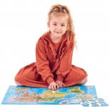 Az állatokat, nevezetességeket és természeti érdekességeket ábrázoló illusztrációk játékos módon bővítik a földrajzi tudást. A 160 darabnak és a nagy formátumnak köszönhetően az összerakás áttekinthető és motiváló.
