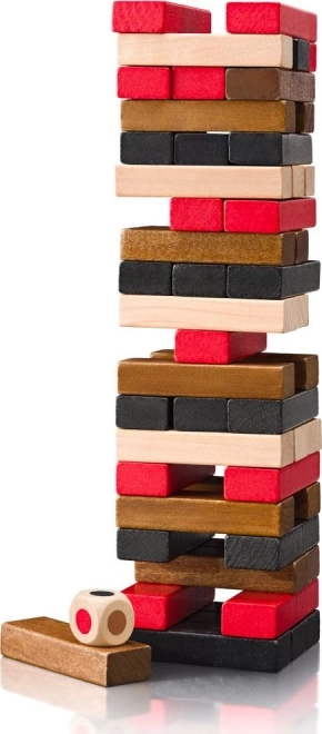 Építs, húzz és egyensúlyozz. A színes fa hasábok és a kocka új kihívásokat adnak, és minden kört feszült, izgalmas show-vá alakítanak.