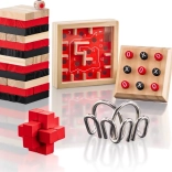 A játékok kulcskészségeket fejlesztenek – türelmet a torony építése közben, stratégiát az amőbában, finommotorikát és összpontosítást a labirintusban, valamint logikus gondolkodást a fém és fa fejtörőknél. Tökéletes ajándék minden korosztálynak.