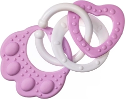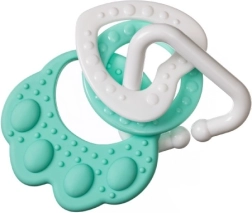 A medvemancs alakú rágókánk ideális a kis felfedezők számára. A speciálisan tervezett, éles szélek nélküli formák biztonságos használatot garantálnak. A rögzített műanyag formák, mint a karikák, szívecskék és csengők, nemcsak szórakozást nyújtanak, hanem a fogzás okozta fájdalom enyhítésében is segítenek.