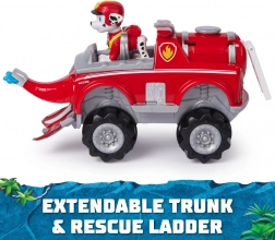 Indulj kalandra Marshallszal és a Mancs Őrjárat: Dzsungel járőr mentőautójával! A jármű a sziréna megnyomására mentő üzemmódba vált – előtűnik az elefántormány és az agyarak az akadályok eltávolításához, valamint egy kihúzható létra a nehezen elérhető helyekhez. Ideális játék a sorozat kis rajongóinak, amely fejleszti a képzelőerőt és a finommotorikát.