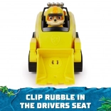 A kedvelt társ, Rubble, masszív járművel érkezik, amely lenyűgöző átalakulást kínál mentőüzemmódba. Nyomd meg a Mancs őrjárat jelvényt a motorháztetőn, és azonnal elfordul az exkavátor kanala, amely felfedi a rinocéroszszarvat. Nyisd ki a hátsó rekeszt, emeld fel a darukart, és használd a bontógolyót bármilyen akadály eltávolításához.
