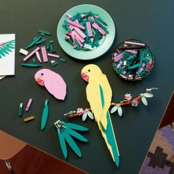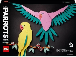 • Papagájos műalkotás – Vidd haza a természetet az Arapapagájok készlettel • Egy darab természet a falon – A készlet 644 LEGO® elemből áll, amelyekből 2 színes arapapagájt építhetsz: az egyik egy ágon ül, a másik pedig kitárt szárnyakkal repül • Fali kiállítás – Ez a LEGO® kockákból készült műalkotás nem igényel keretet, és kifejezetten falra akasztásra tervezték • Közös építés – A készlethez 2 építési útmutató tartozik, így a természet témájú modellt barátokkal együtt is összeállíthatjátok • LEGO® Art készlet felnőtteknek – Remek ajándékötlet LEGO® rajongó felnőtteknek és tartalmas kreatív projektek kedvelőinek • Díszítsd otthonod – Minden készlettel saját kockaműalkotást hozhatsz létre, és büszkén kiteheted otthon vagy az irodában • Méretek – A készlet 644 elemből áll. A sárga papagáj több mint 40 cm magas, a rózsaszín papagáj pedig több mint 35 cm magas.