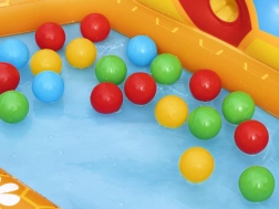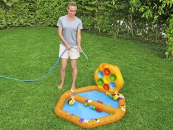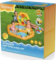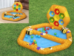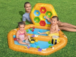 A csomag tartalmaz egy különálló medencét, amely labdákkal van tele, két Puffy Pal játékot méhecskék formájában, húsz műanyag labdát és egy javítókészletet. A medence méretei: 127 cm x 119 cm x 61 cm.